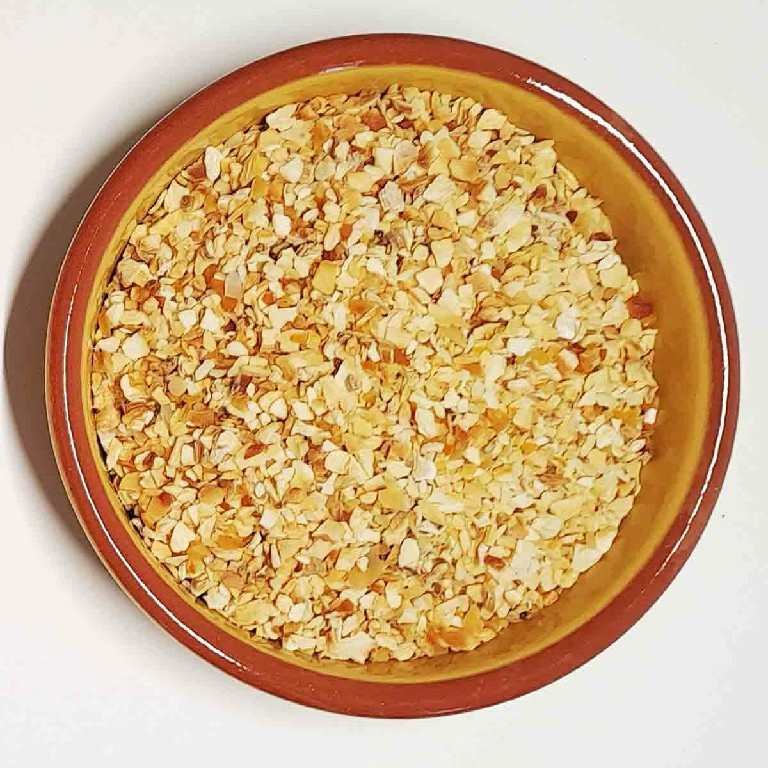 El ajo deshidratado granulado ofrece un sabor intenso, uniforme y práctico para todo tipo de preparaciones. Su textura fina permite una disolución rápida y una distribución pareja del aroma, logrando un toque auténtico de ajo sin necesidad de pelar ni picar. Envasado en un frasco de vidrio, mantiene su frescura, potencia y calidad por más tiempo.